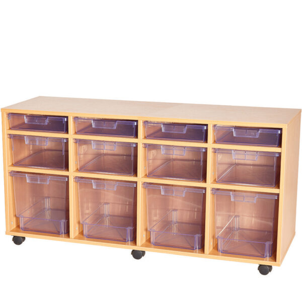 These tray units are fitted with the Glide & Tilt Runner System, which holds trays in an angled position, allowing easy & safe access to the tray contents. All units include Certwood crystal clear trays that are moulded in Super tuff shatter-proof High-Impact Polystyrene (HIPS). Units are fully mobile with locking castors. Supplied in a Beech finish.