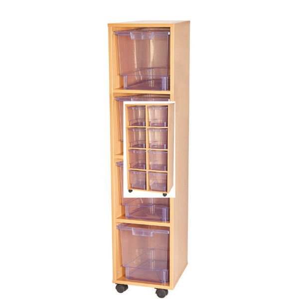 These tray units are fitted with the Glide & Tilt Runner System, which holds trays in an angled position, allowing easy & safe access to the tray contents. All units include Certwood crystal clear trays that are moulded in Super tuff shatter-proof High-Impact Polystyrene (HIPS). Units are fully mobile with locking castors. Supplied in a Beech finish.