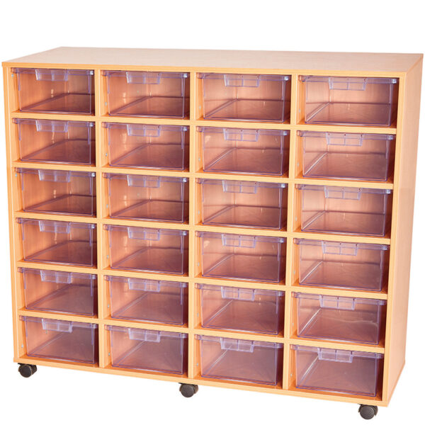 These tray units are fitted with the Glide & Tilt Runner System, which holds trays in an angled position, allowing easy & safe access to the tray contents. All units include Certwood crystal clear trays that are moulded in Super tuff shatter-proof High-Impact Polystyrene (HIPS). Units are fully mobile with locking castors. Supplied in a Beech finish.