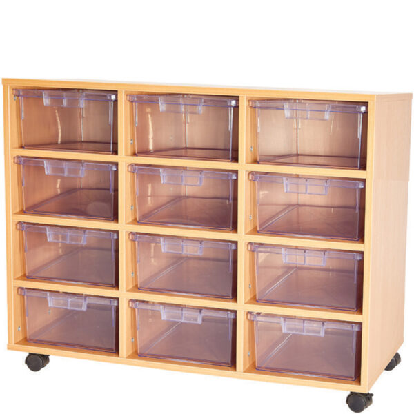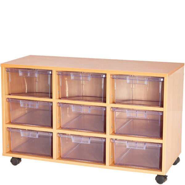 These tray units are fitted with the Glide & Tilt Runner System, which holds trays in an angled position, allowing easy & safe access to the tray contents. All units include Certwood crystal clear trays that are moulded in Super tuff shatter-proof High-Impact Polystyrene (HIPS). Units are fully mobile with locking castors. Supplied in a Beech finish.