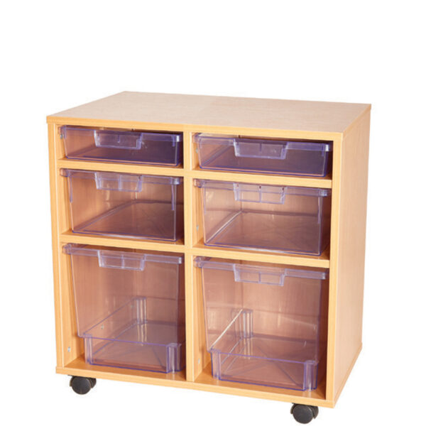 These tray units are fitted with the Glide & Tilt Runner System, which holds trays in an angled position, allowing easy & safe access to the tray contents. All units include Certwood crystal clear trays that are moulded in Super tuff shatter-proof High-Impact Polystyrene (HIPS). Units are fully mobile with locking castors. Supplied in a Beech finish.