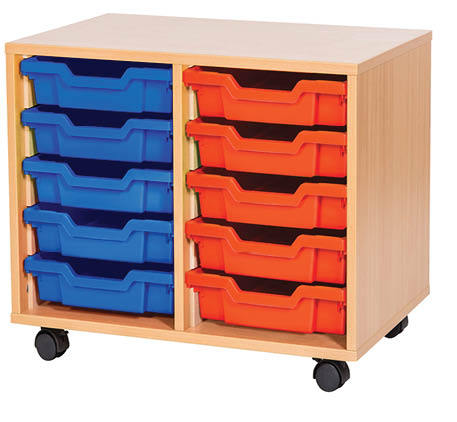 This 10 Tray double bay mobile unit is a high quality, UK manufactured unit. This unit includes 10 Gratnells trays that are available in a range of colours.