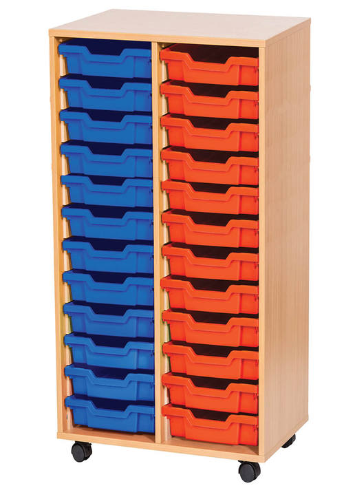 This 24 Tray double bay mobile unit is a high quality, UK manufactured unit. This unit includes 24 Gratnells trays that are available in a range of colours.