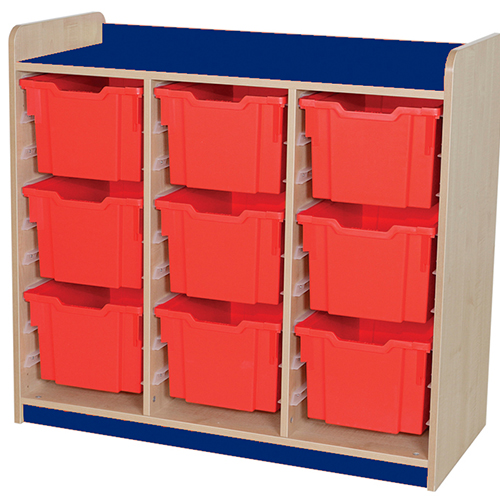 This Triple Bay KubbyClass 9 Extra Deep Tray Unit is a high quality, UK manufactured unit. This Unit is available in 7 vibrant finishes with 9 extra deep Gratnells trays available in 16 colours guaranteed to brighten up any school, nursery or home environment.