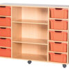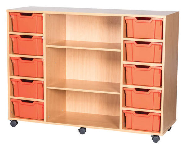 10 Deep Tray Mobile or Static Quad Bay Classroom Storage Unit with Centre Shelves – 1025mm High