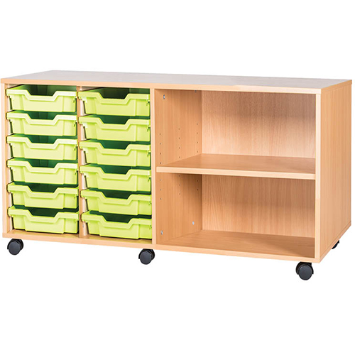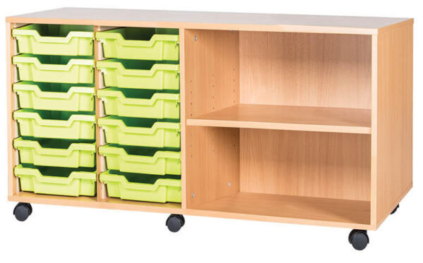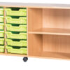 12 Tray Mobile or Static Quad Bay Classroom Storage Unit with End Shelf – 615mm High