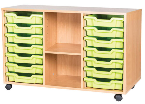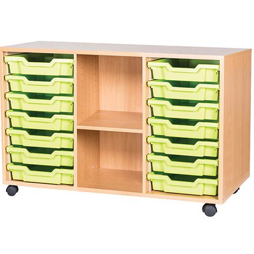 This 14 Tray Triple Unit with shelves is a high quality, UK manufactured unit. This Unit includes 14 Gratnells trays that are available in a range of colours,