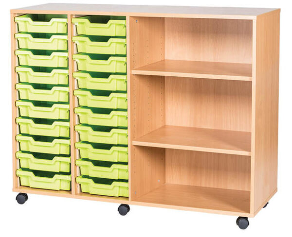 This 20 Tray Quad Unit with shelves is a high quality, UK manufactured unit. This Unit includes 20 Gratnells trays that are available in a range of colours,