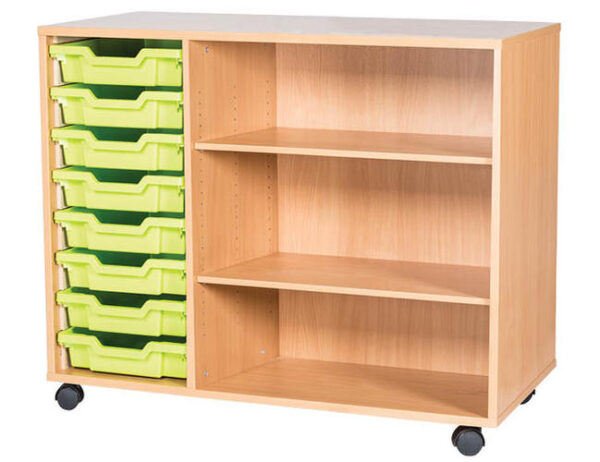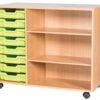 8 Tray Mobile or Static Triple Bay Classroom Storage Unit With End Shelves-779mm High