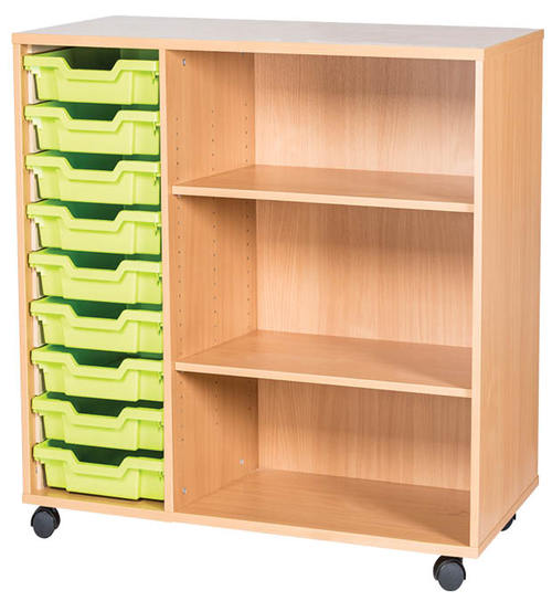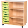 9 Tray Mobile or Static Triple Bay Classroom Storage Unit With End Shelves-861mm High